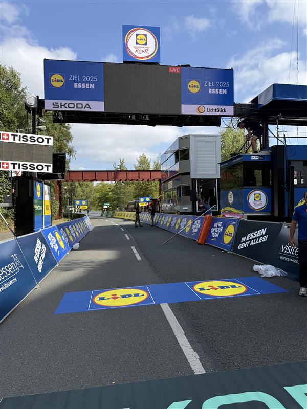 Eine Woche, fünf Städte, unzählige Kilometer – und wir mittendrin: Von Essen über Herford, Arnsberg und Kassel bis nach Magdeburg haben wir die Deutschland-Tour mit Fahnen, Bannern, Platten und Torbögen ausgestattet. Regen, Sonne, Schweiß – unser Team hat alles gegeben, damit die Strecke sichtbar und erlebbar wird. Besonders spannend: Schon beim Packen und Vorbereiten hat uns Radio Bonn/Rhein-Sieg begleitet. Hören Sie hier rein, wie es bei uns in Hennef klang, kurz bevor es nach Essen losging: