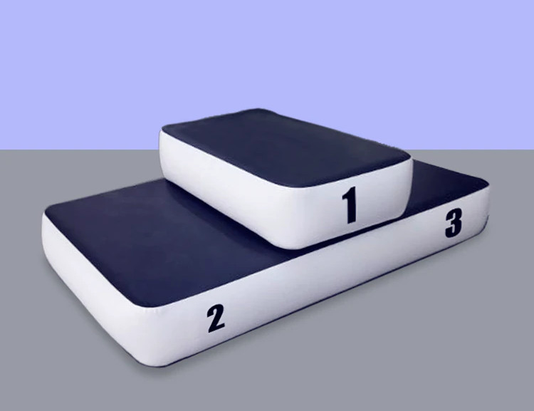 Das aufblasbare Grundgestell unseres Podiums aus 2500 g/m² starkem PVC sorgt für die nötige Stabilität. Die Antirutschbeschichtung auf den Stehflächen verhindert, dass die Sieger beim Betreten ausrutschen.