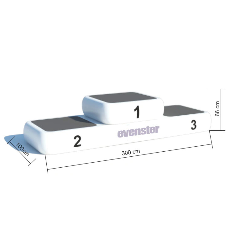 Das aufblasbare Siegerpodest bietet eine durchdachte Lösung für Veranstalter, die flexibel, sicher und sichtbar arbeiten wollen. Der Moment des Sieges hat eine große Bühne verdient, welche mit dem flexiblen Podium unkompliziert und kostengünstig kreiert werden kann.